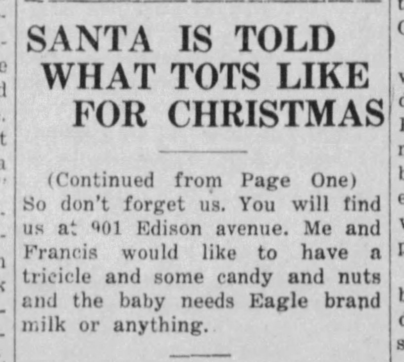 I found this yesterday while researching. Still brings tears to my eyes. It is a letter written to Santa Claus in December 1932 by my Uncle Bill (eldest son of William Joseph ‘Buddy’ Hamilton, my grandfather who disappeared and is believed murdered in Lostmans River in February 1932). Uncle Bill asks for presents for himself and his little brothers, Francis Hamilton and Ernest Hamilton (my father).