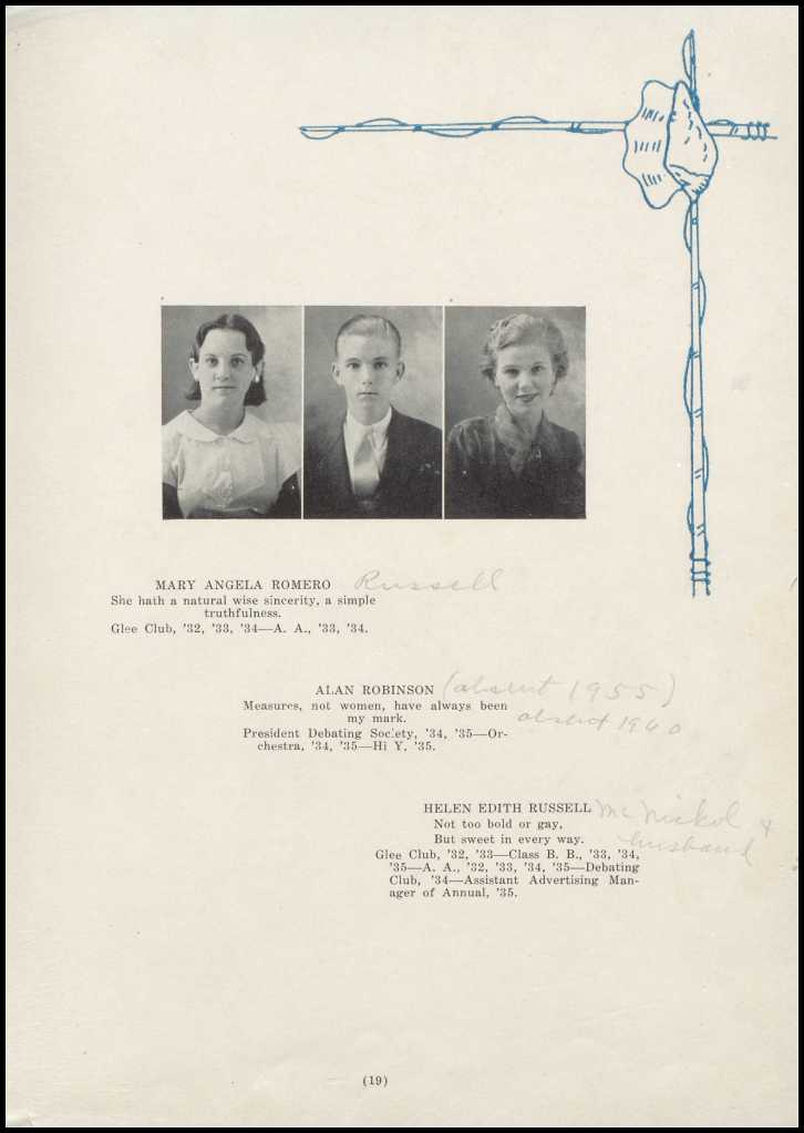 Mary Angela Romero, Alan Robinson, Helen Edith Russell