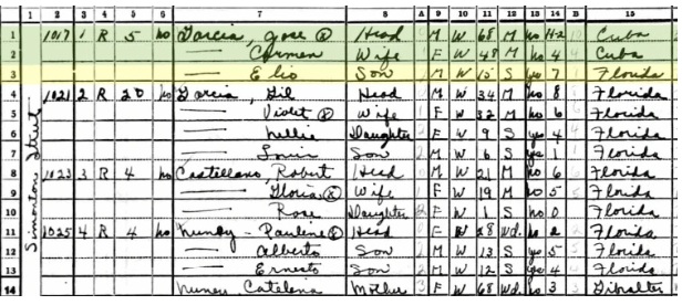 SOURCES: Research files of Jane GARCIA Rowland, diary entries 1891-1904, Key West Directory 1914, Ancestry.com; Personal recollections; 1920 United States Federal Census; 1930 United States Federal Census; Florida Divorce Index, 1927-2001; Florida Marriage Collection, 1822-1875 and 1927-2001; Florida Passenger Lists, 1898-1964; Florida State Census, 1867-1945; Florida, Naturalization Records, 1847-1995; U.S., World War II Draft Cards Young Men, 1940-1947; Web: Florida, Find A Grave Index, 1800-2012