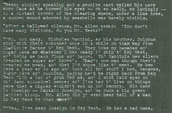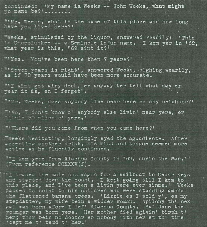 From the book “Florida’s Last Frontier” by Charlton Tebeau: “John Weeks is elsewhere described as a Union sympathizer who took refuge in Key West during the War between the States. He was among a number of persons who located at Cape Sable to produce vegetables for the town of Key West.”