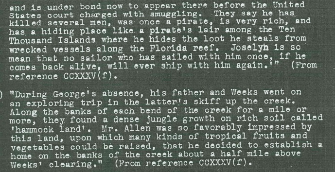Copeland Papers: “History of the 10,000 Islands etc.” 1927