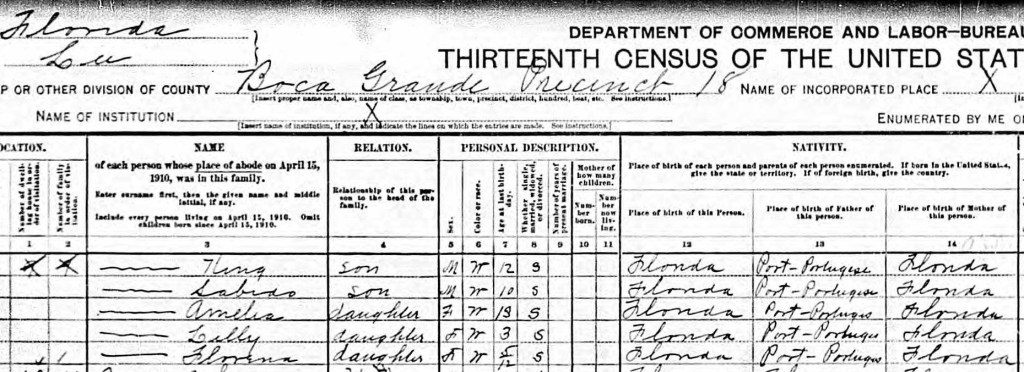 In 1910, Salvador lived with his parents and siblings in Boca Grande, Florida.