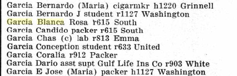 In 1920, Blanca lived with her parents and siblings at 615 Simonton Street. Her father, Jose worked at a cigar factory.
