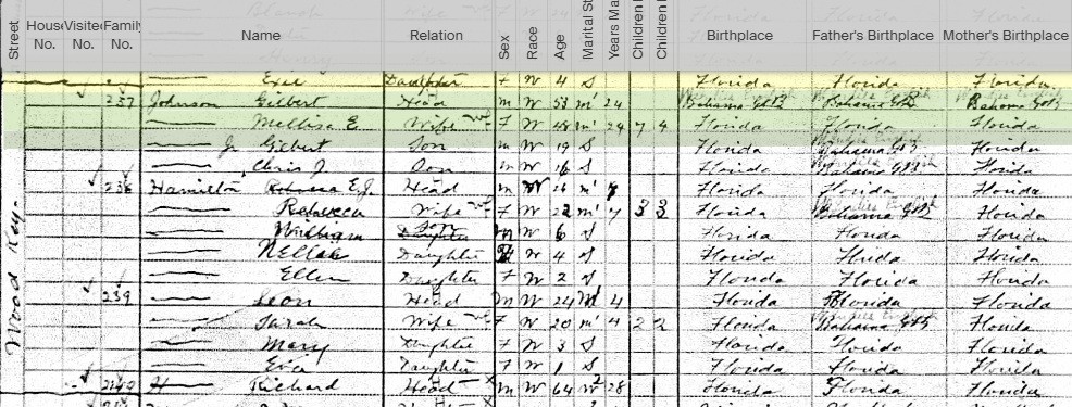 Rebecca Elizabeth JOHNSON married Eugene Joseph HAMILTON in Lee, Florida, on February 8, 1903, when she was 15 years old.