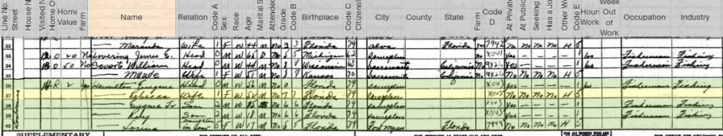 1910 United States Federal Census; 1920 United States Federal Census; 1930 United States Federal Census; 1940 United States Federal Census; Florida, County Marriage Records, 1823-1982; Fort Myers News-Press Obituary 12 Apr 1947