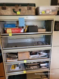 My sister came up with the idea for me to go through dressers and designate one drawer for items I needed to review. I would later transfer the contents to the designated room. The rest of the drawers, they could do what they wanted. In tandem with this work, I began clearing a spot in my office at home for the new materials that I was finding. Because you are likely working quickly through the clearing of the deceased’s home, it is helpful to begin transferring items to the designated area in your own home as quickly as possible.