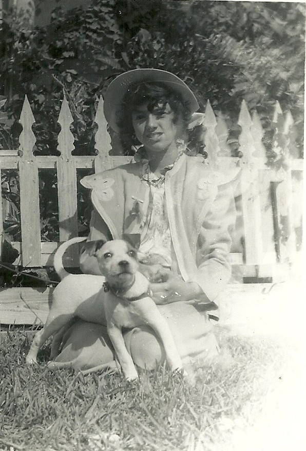 Jane with pigeon. Her sister, Josephine says Jane used to scare them by chasing them with a pigeon. Jane remembers she got the shoes when she was five and they were too big. She was so happy when she grew into them. There are little scotty dogs on the shoes and Jane loved those.