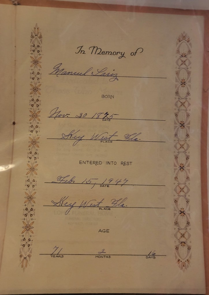 Manuel was living at 913 Watson St when he died on February 15, 1947, in Key West, Florida, at the age of 71, and was buried there.