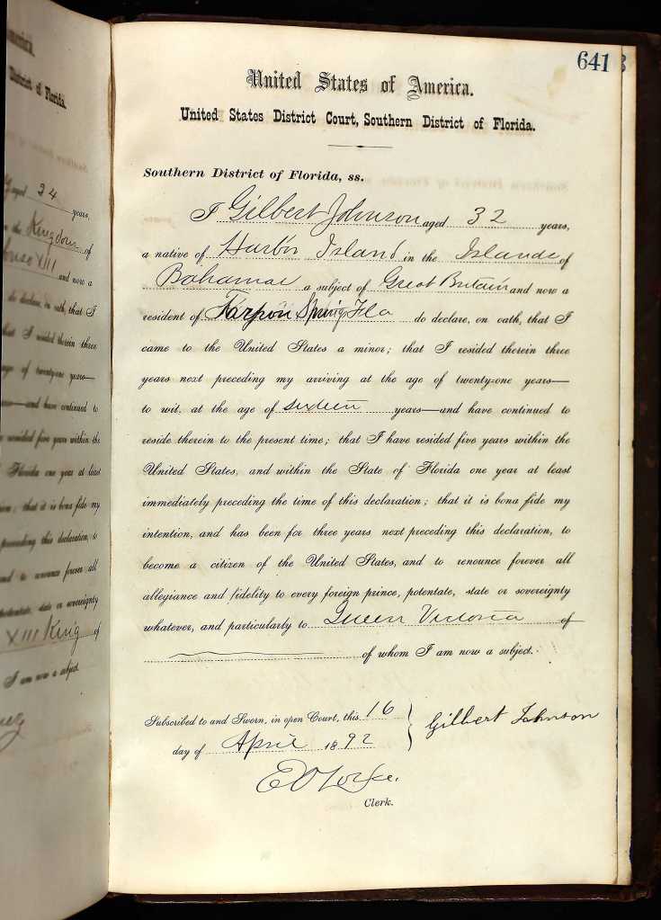 Naturalization Declaration 16 Apr 1892 • Key West, Florida, USA